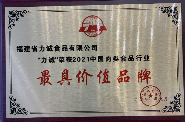 福建力诚食品荣获“2021年中国肉类食品行业最具价值品牌”等三大重量级奖项